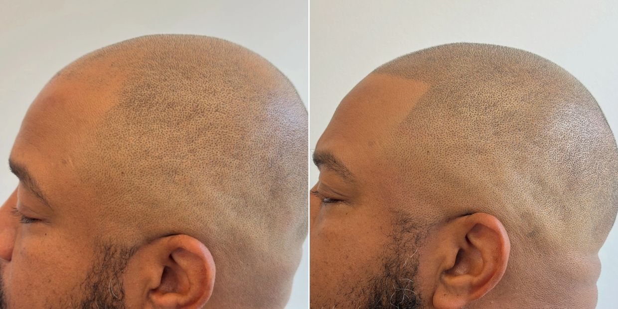 Scalp Micropigmentation is a non-surgical hair loss solution that uses tiny, layered pigment dots to replicate the look of natural hair follicles. Think of it as a “hair tattoo” that creates the illusion of a fuller hairline, conceals thinning areas, or gives the appearance of a clean-shaven head for those with complete hair loss. It’s perfect for men and women experiencing thinning, bald spots, or even scarring. At DFINED INK, we specialize in creating natural-looking results that enhance your features and complements your skin tone. Our team of experts uses advanced techniques and pigments to ensure that your results are subtle, yet noticeable.